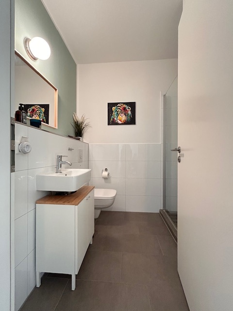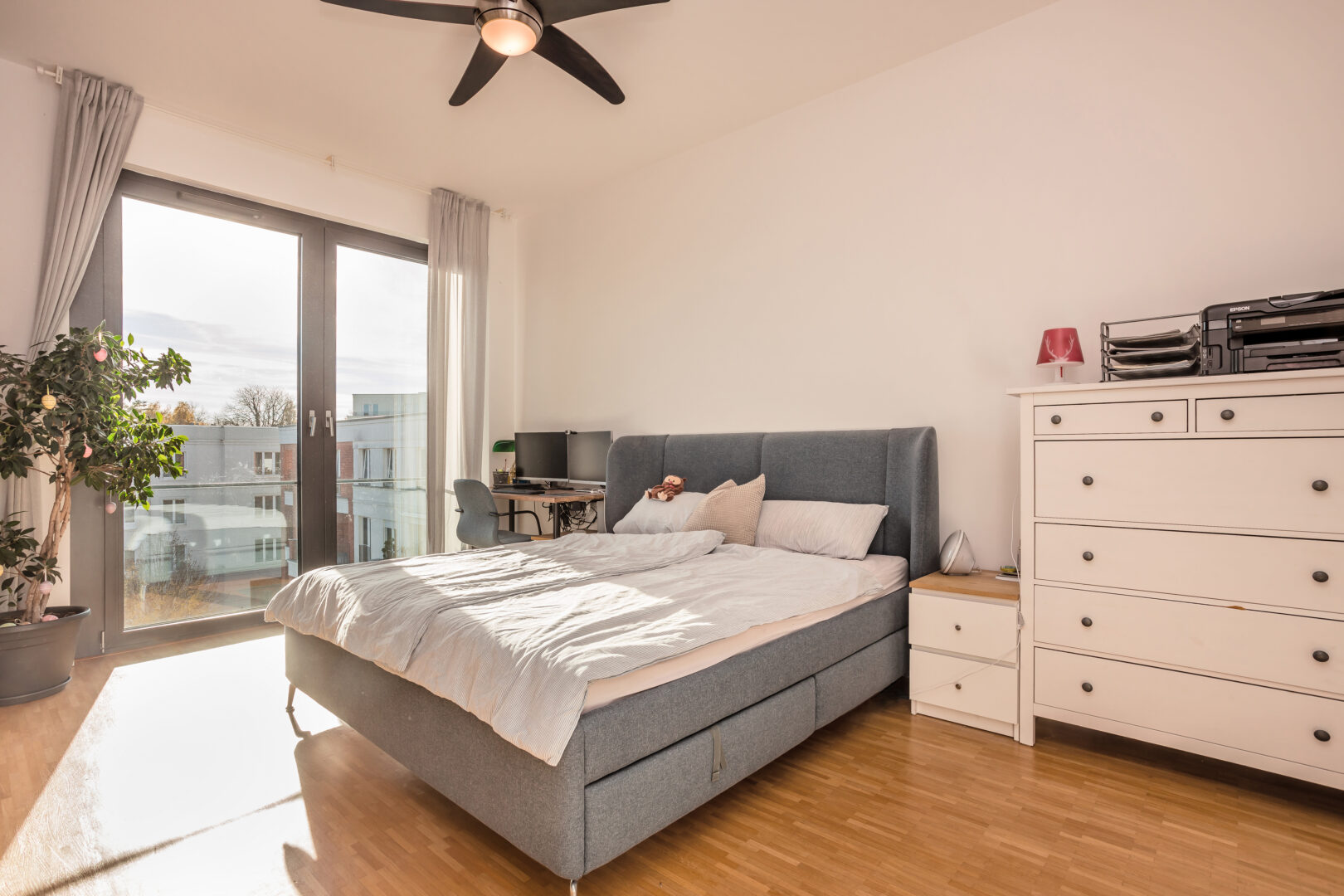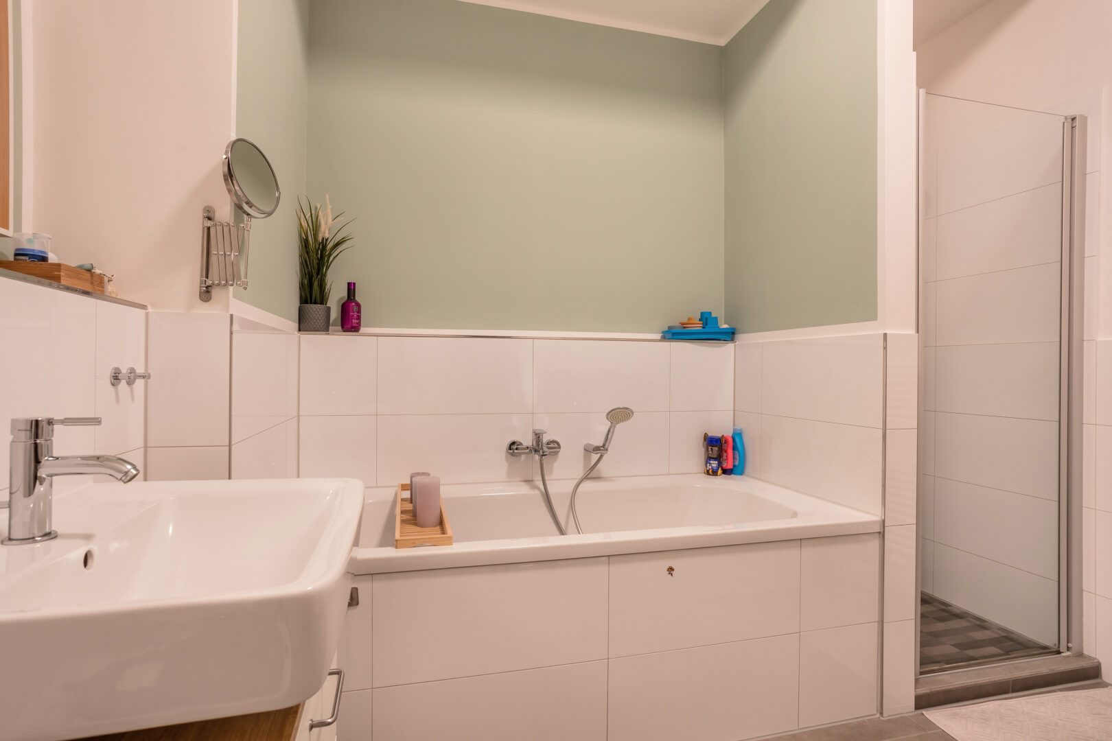 Die rund 93 m² Wohnfläche verteilen sich auf drei Zimmer, ein Gäste-WC mit Dusche, ein Masterbad mit Wanne und Dusche sowie einen geräumigen Abstellraum.
