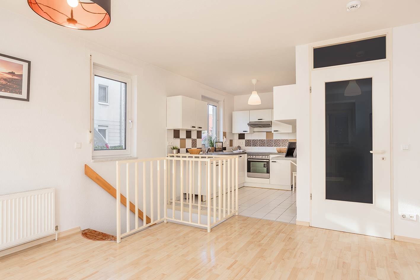 Ein besonderer Mehrwert stellt der zusätzliche, nicht zur Wohnfläche zählende Untergeschossbereich dar. Über eine Holztreppe gelangt man vom Wohnbereich in das Untergeschoss. Hier stehen zwei geflieste Räume zur Verfügung, die sich vielseitig als Hobby-, Fitness- oder Arbeitsbereich nutzen lassen.