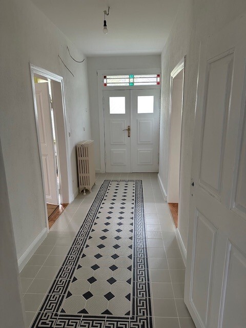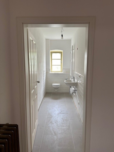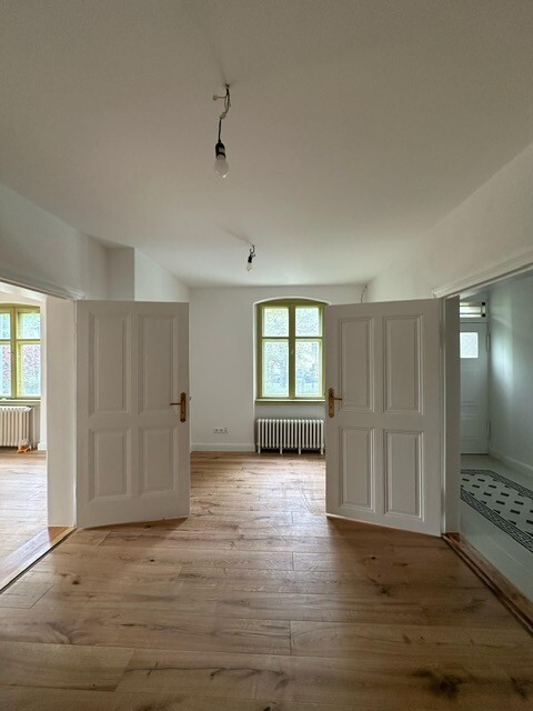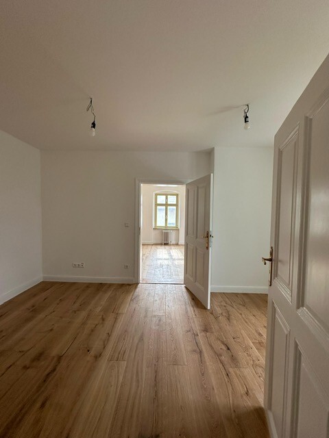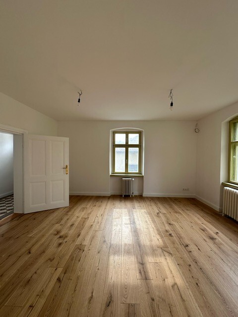 Der Zutritt erfolgt über drei separate Eingänge und bietet Ihnen flexible Nutzungsmöglichkeiten. Die Gewerbefläche ist in vier Räume aufgeteilt, von denen eines als Durchgangszimmer genutzt werden kann. Alle Zimmer haben ein Fenster und werden beheizt. Parkettböden erstrecken sich über alle Räume; Bad und Küche sind gefliest. Die große Küche ist mit einer Einbauküche und Elektrogeräten ausgestattet und verfügt über ein Fenster. Der große Toilettenraum ist ebenfalls tagesbelichtet.