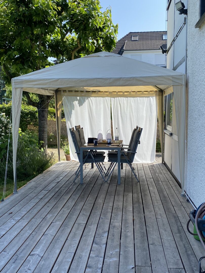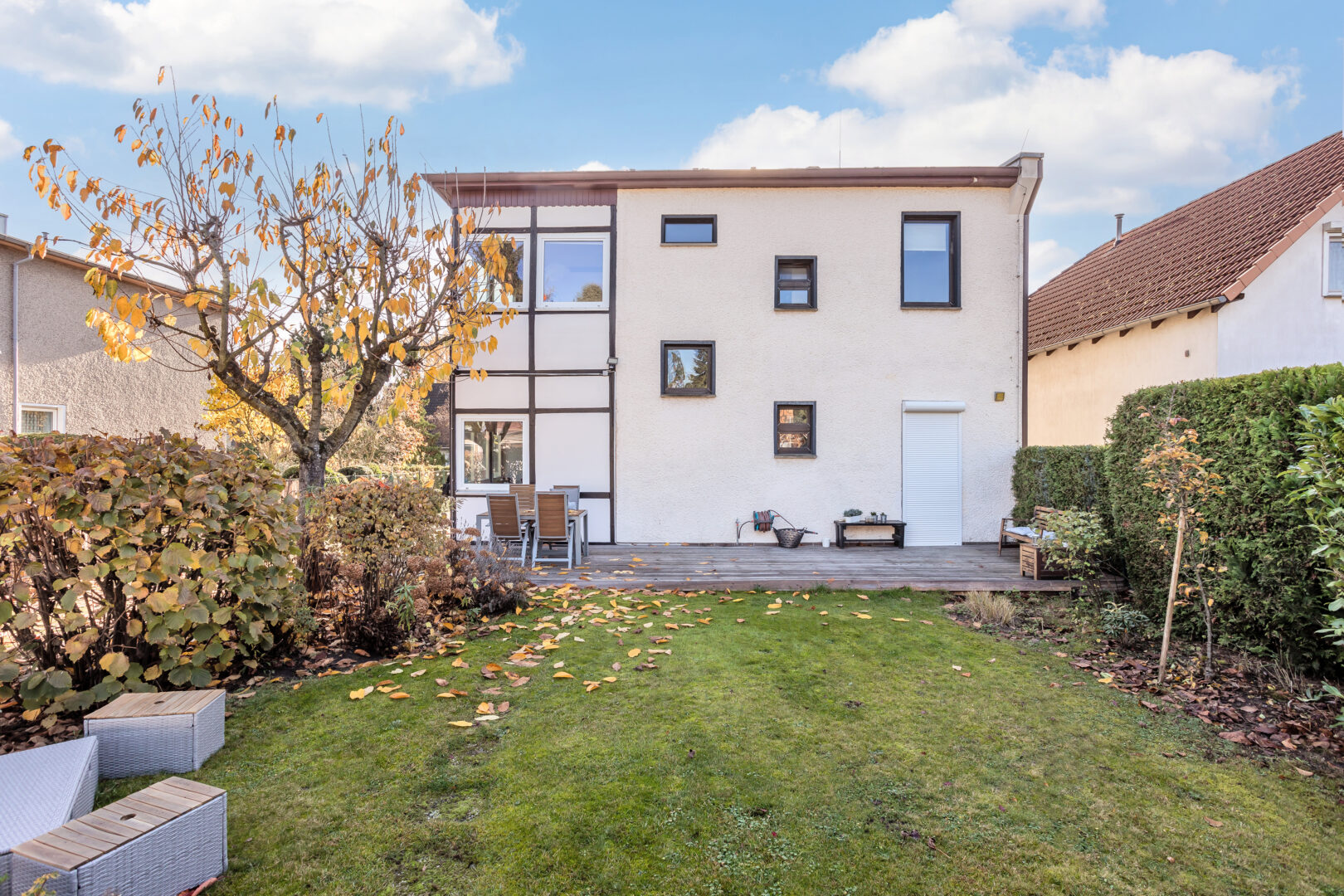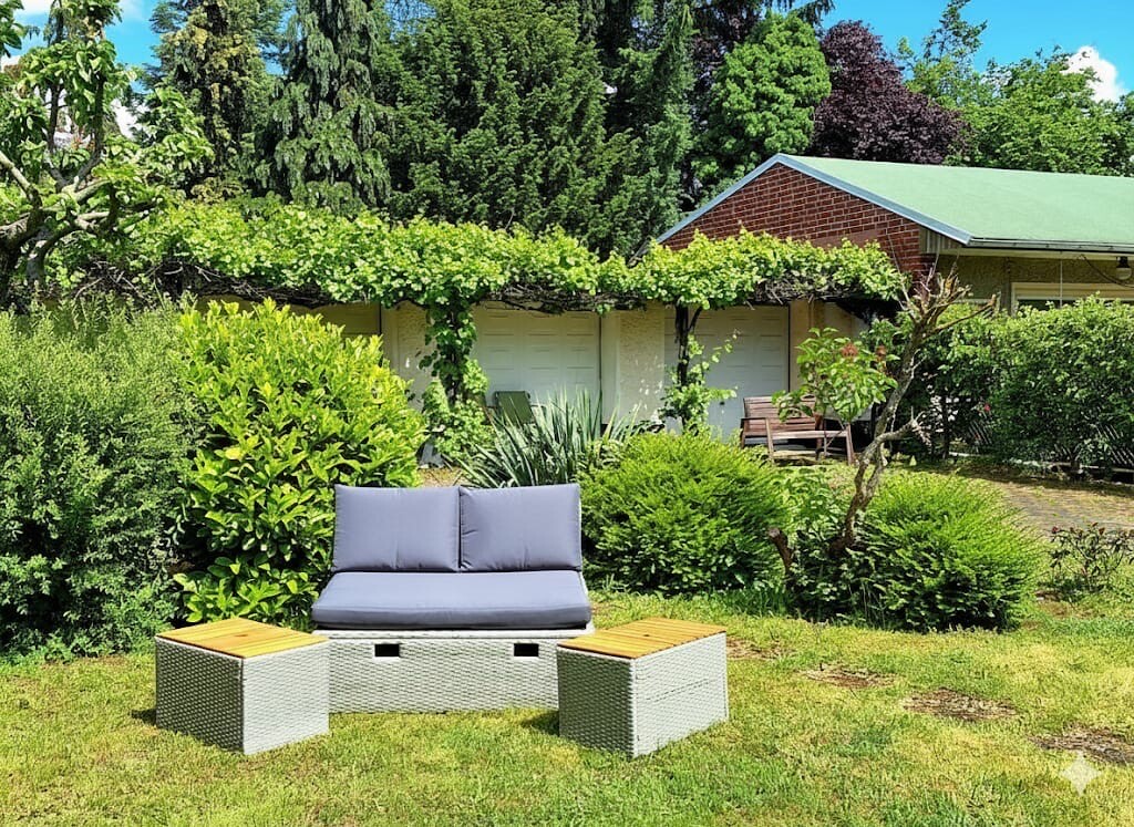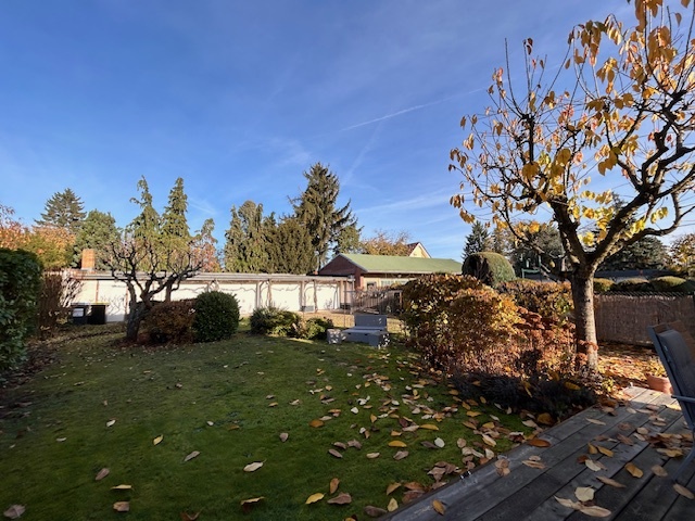 In den 70er Jahren wurde im hinteren Bereich des Gartens eine Garagenanlage mit 4 Stellplätzen und Depotraum mit Baugenehmigung und Erlaubnis zur Grenzbebauung errichtet. Im Jahr 2011 wurden im gesamten Garagentrakt die Dachbalken erneuert, was zur langfristigen Stabilität und Werterhaltung der Immobilie beiträgt.