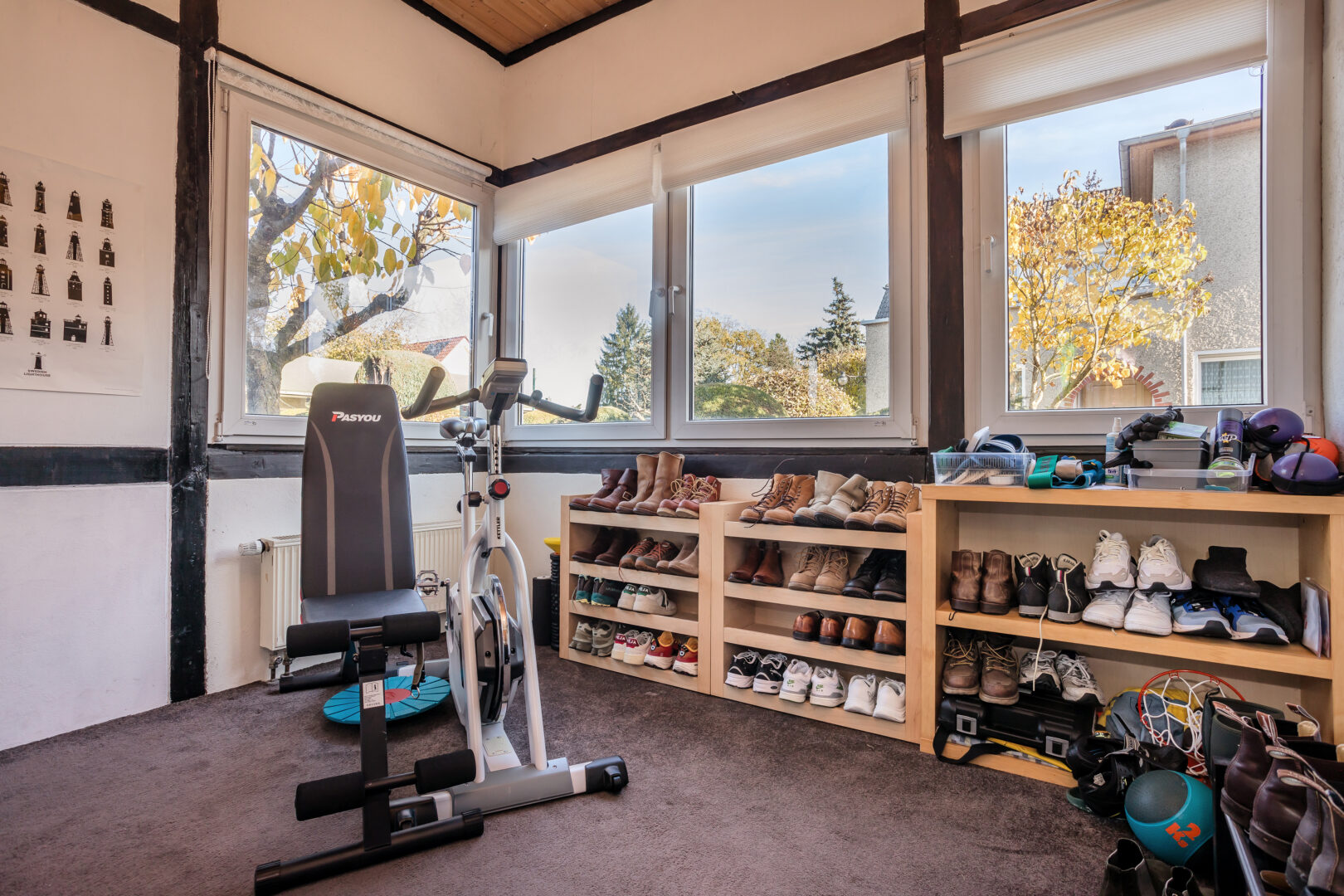 Das Haus ist teilunterkellert und bietet eine Wohnfläche von 160 m², verteilt auf zwei Etagen. Beim Betreten des Hauses fällt die massive, einbruchshemmende Sicherheitstür sofort ins Auge. Sie sorgt nicht nur für ein sicheres Wohngefühl, auch fügt sie sich optisch harmonisch in das Gesamtbild ein. Dahinter empfängt Sie ein kleiner Eingangsflur. Von dort aus gelangen Sie rechts in den im charmanten Fachwerkstil errichteten Wintergarten. Der lichtdurchflutete Raum wird derzeit als Garderobenbereich genutzt. Im Jahr 1998 erfolgte eine umfassende Sanierung des Fachwerkanbaus. Die Balken wurden instandgesetzt, Wände neu verputzt und ein Heizkörper eingebaut.