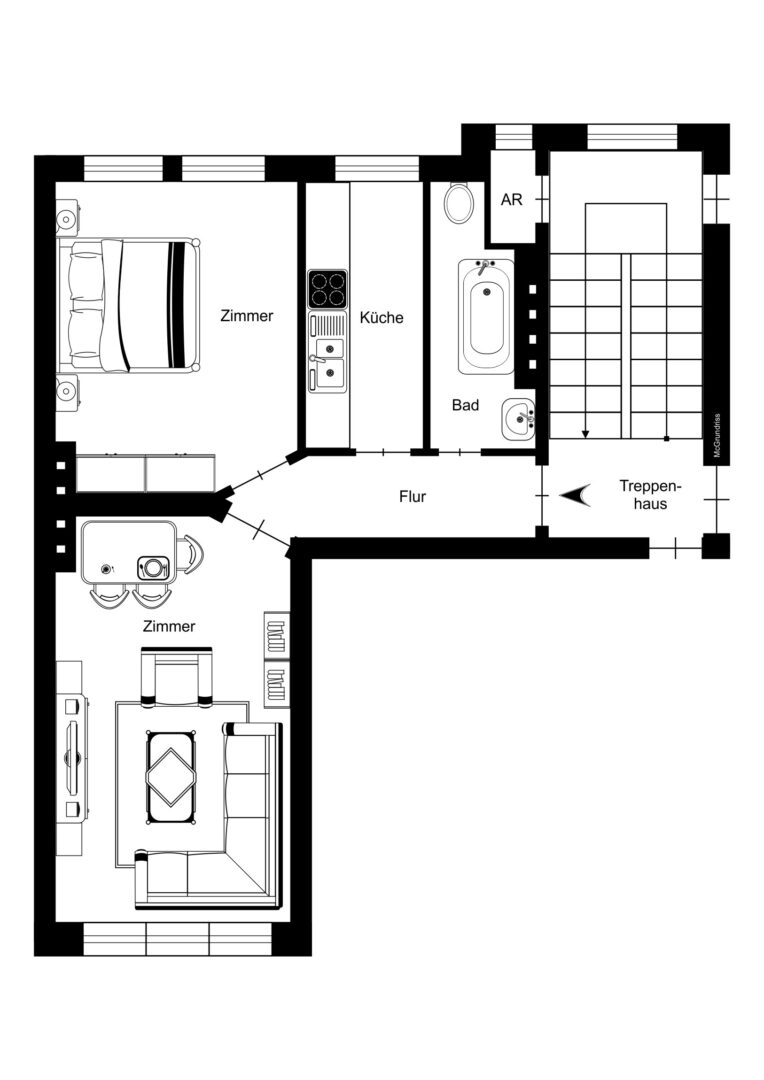 Diese charmante, kompakte Wohnung besticht durch ihre helle Atmosphäre und einen durchdachten, funktionalen Grundriss. Auf rund 45 m² Wohnfläche verteilen sich zwei Zimmer, eine Küche sowie ein Badezimmer.