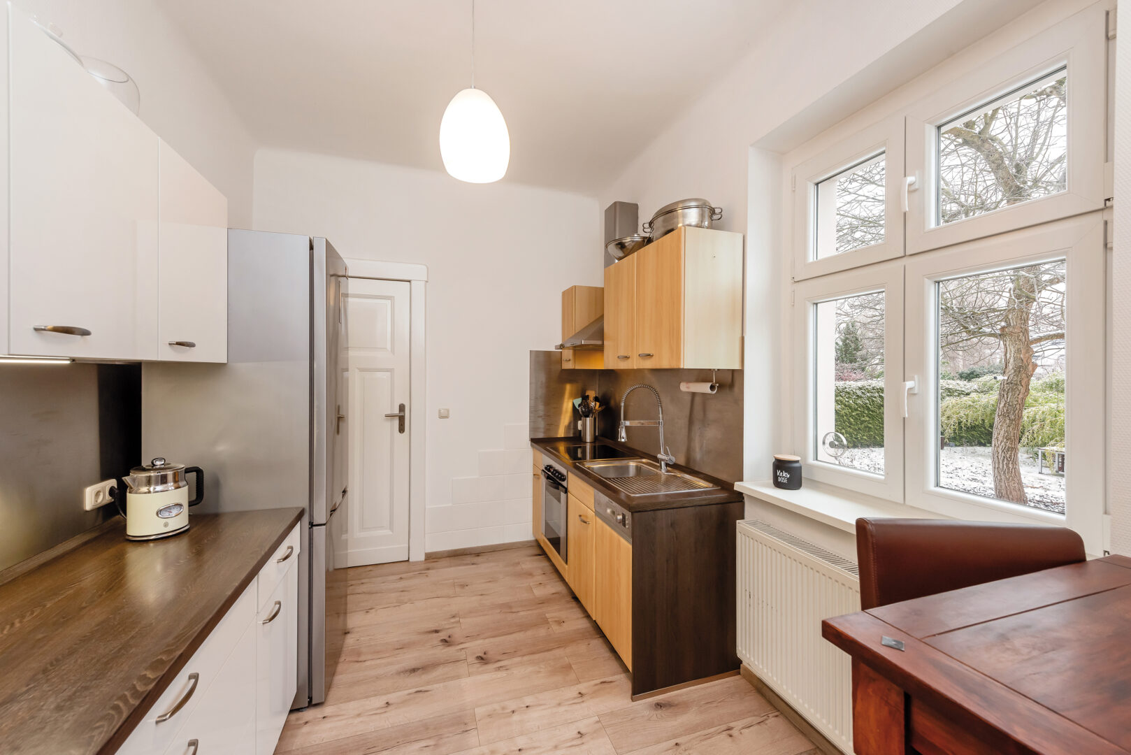 - Hochwertig aufgearbeitete Dielenböden ziehen sich durch das gesamte Haus