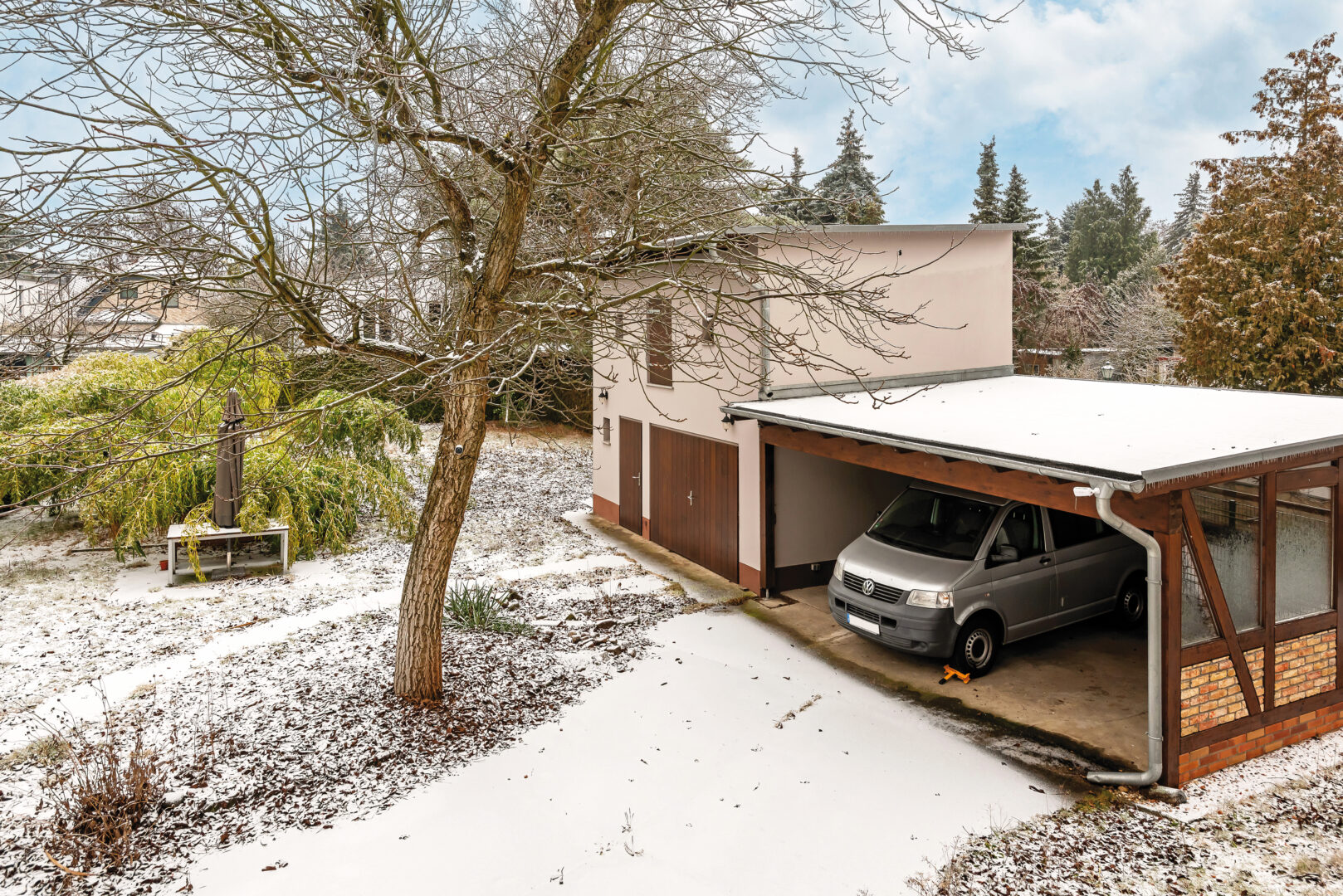 - geräumiger Carport mit zwei Stellplätzen und zusätzliche Garage mit Einzelstellplatz