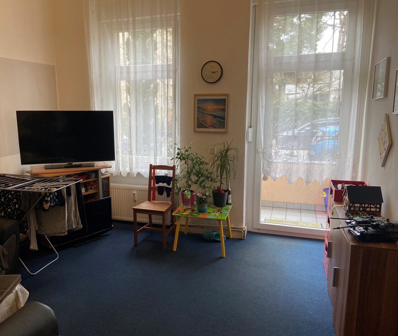 Vom großzügigen Wohnzimmer aus gelangen Sie in das zweitere Zimmer, das derzeit als Schlafzimmer genutzt wird. Dem Wohnzimmer vorgelagert ist ein kleinen, der über drei Stufen direkten Zugang zum eigenen Gartenbereich bietet. Der private Gartenanteil ist nicht angelegt, bietet aber viel Potenzial zur individuellen Gestaltung und zusätzlichen Erholungsfläche im Freien – ein besonderes Plus bei Erdgeschosswohnungen.