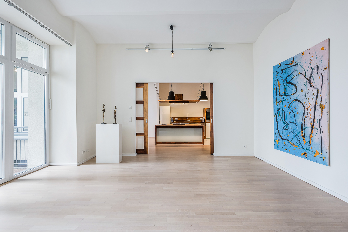 Dieses außergewöhnliche Loft im Hochparterre befindet sich in einem stilvollen Altbau im Herzen von Kreuzberg nahe der Spree. Auf rund 165 m² wird klassische Architektur mit modernem Wohnkomfort und einem offenen, lichtdurchfluteten Raumkonzept verbunden. Die großzügige Raumaufteilung und das offene Wohnkonzept schaffen ein luftiges, modernes Wohngefühl, das durch klare Linien und hochwertige Materialien unterstrichen wird.