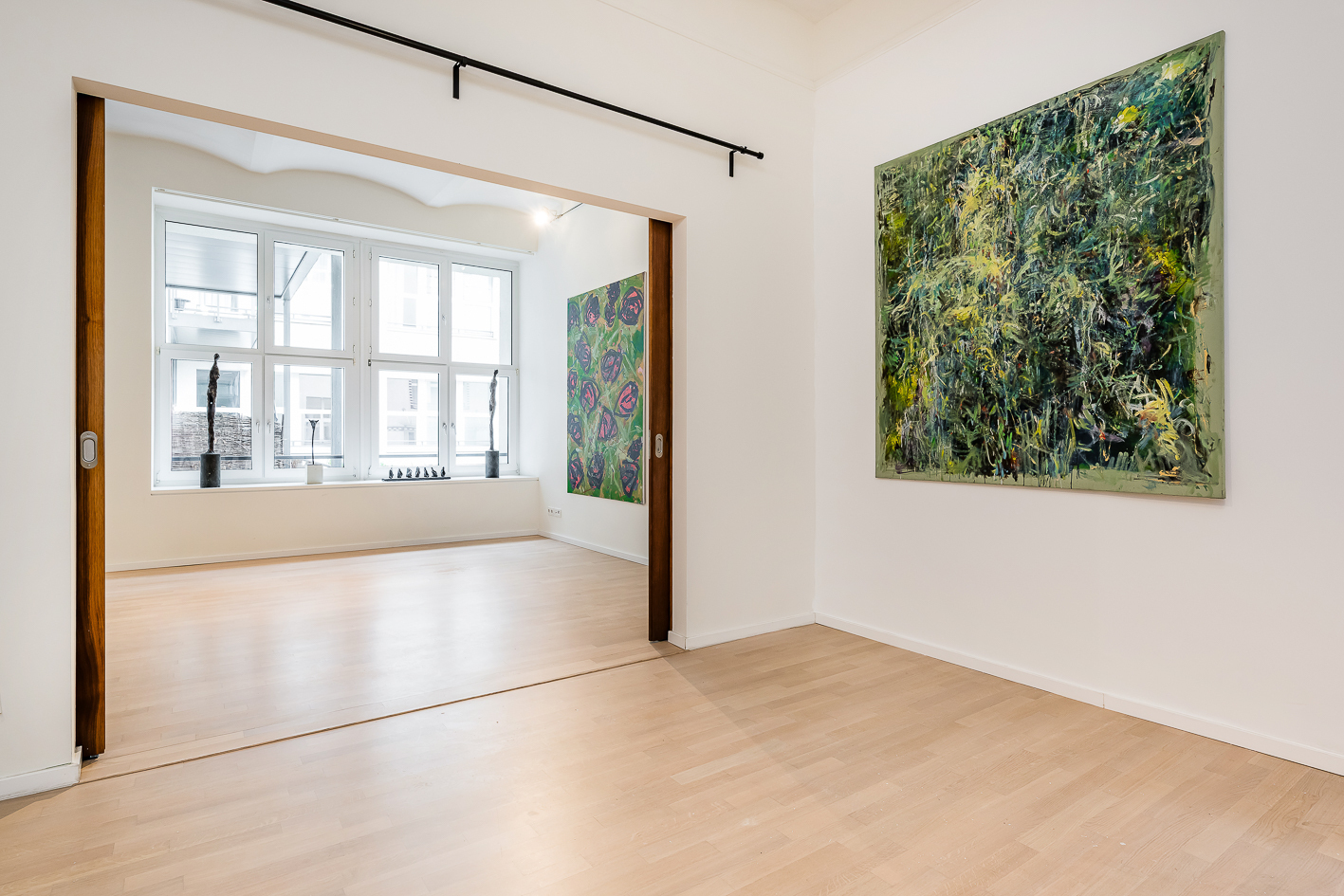 Das Herzstück der Wohnung ist der weitläufige Küchen- und Essbereich mit moderner Einbauküche. Die großzügige Kücheninsel lädt zum Kochen und Verweilen ein. Eine zweiflügelige Schiebetür trennt den Küchen-/Essbereich vom großen, sonnigen Wohnzimmer, das an einen der beiden großen Balkone angeschlossen ist.